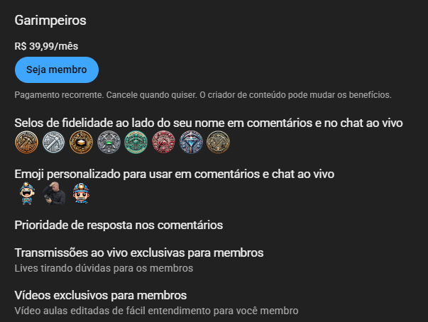 Aqui você será direcionado a página do youtube para realizar a assinatura do plano mensal